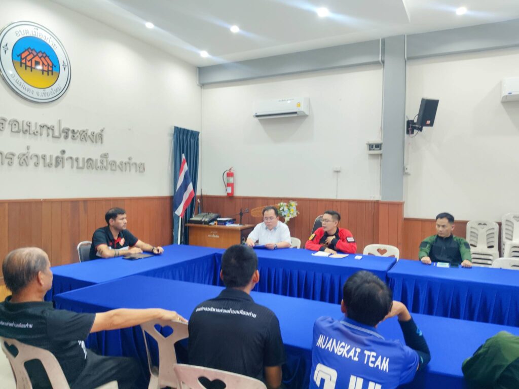 วันพฤหัสบดีที่ 2 เมษายน 2569 เวลา 13.30 น. นางเสาวนีย์ ผางมาลี นายกองค์การบริหารส่วนตำบลเมืองก๋าย มอบหมายให้ นายพีรณัฐ วารีรัตน์ รองนายกองค์การบริหารส่วนตำบลเมืองก๋าย เป็นประธานในการประชุมซักซ้อมการดับไฟป่าในพื้นที่ตำบลเมืองก๋าย ณ อาคารอเนกประสงค์องค์การบริหารส่วนตำบลเมืองก๋าย