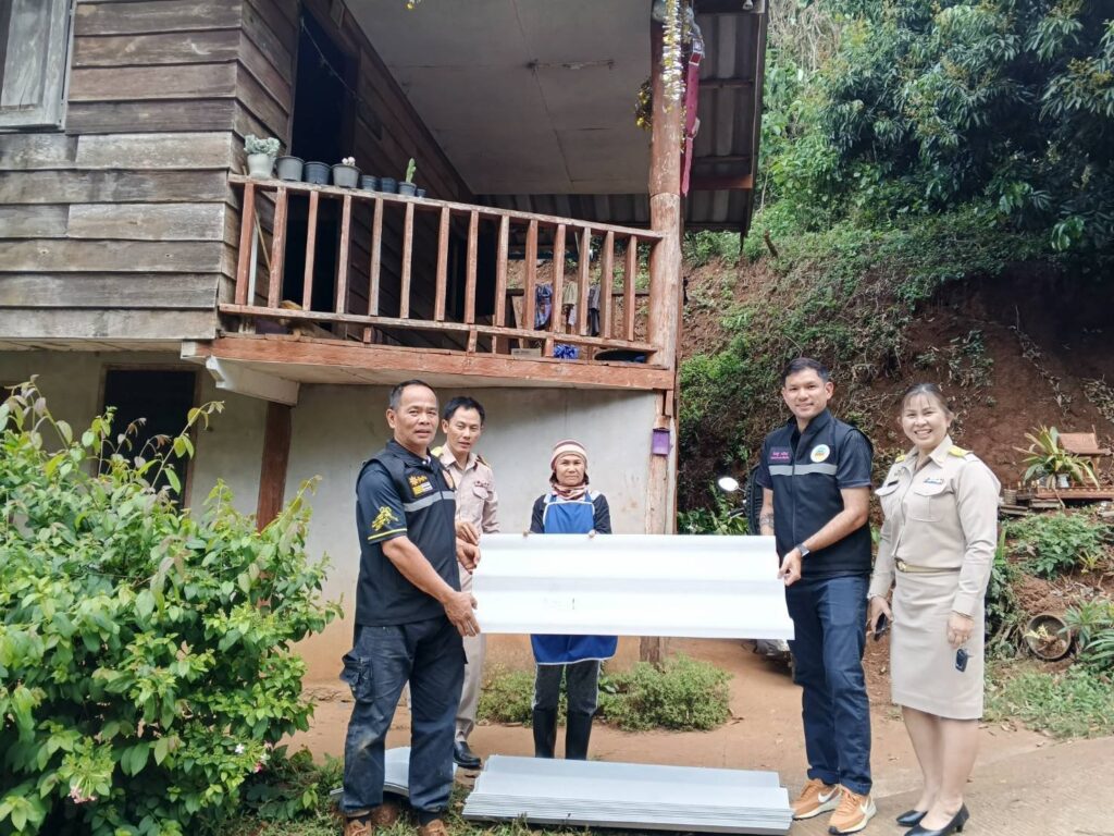 วันที่ 18 มีนาคม 2569 นางเสาวนีย์ ผางมาลี นายกองค์การบริหารส่วนตำบลเมืองก๋าย พร้อมคณะผู้บริหาร นักป้องกันและบรรเทาสาธารณภัย ได้มอบกระเบื้องมุงหลังคาและวัสดุอุปกรณ์ซ่อมแซมบ้านเรือนแก่ผู้ประสบภัยที่ได้รับผลกระทบจากพายุฝนฟ้าคะนองและลมกระโชกแรง ณ บ้านเหล่า หมู่ที่ 4 จำนวน 6 ราย