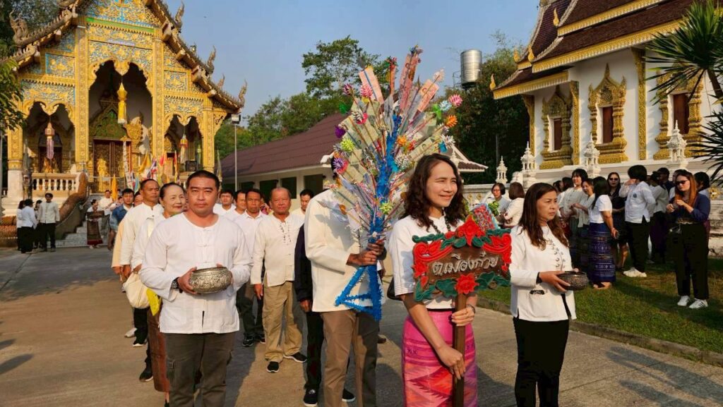 วันที่ 3 มีนาคม 2569 เวลา 08.30 น. นางเสาวนีย์ ผางมาลี นายกองค์การบริหารส่วนตำบลเมืองก๋าย พร้อมด้วย นายเอกพล เฉียบแหลม กำนันตำบลเมืองก๋าย นำคณะผู้บริหาร สมาชิกสภา เจ้าหน้าที่องค์การบริหารส่วนตำบลเมืองก๋าย และฝ่ายปกครองตำบลเมืองก๋าย เข้าร่วมพิธีเปิดงานโครงการส่งเสริมวันสำคัญทางพระพุทธศาสนา สัปดาห์วันมาฆบูชา ประจำปีงบประมาณ พ.ศ. 2569 เพื่อรณรงค์ให้พุทธศาสนิกชนน้อมระลึกถึงคุณพระรัตนตรัย พร้อมทั้งสืบสานวัฒนธรรมและประเพณีอันดีงาม ณ หอประดิษฐานพระพุทธศตวรรษมุนีศรีแม่แตง (ประตูสู่แม่แตง) ตำบลขี้เหล็ก อำเภอแม่แตง จังหวัดเชียงใหม่ Published , 4 มีนาคม 2569 | By อบต.เมืองก๋าย Post Views: 8