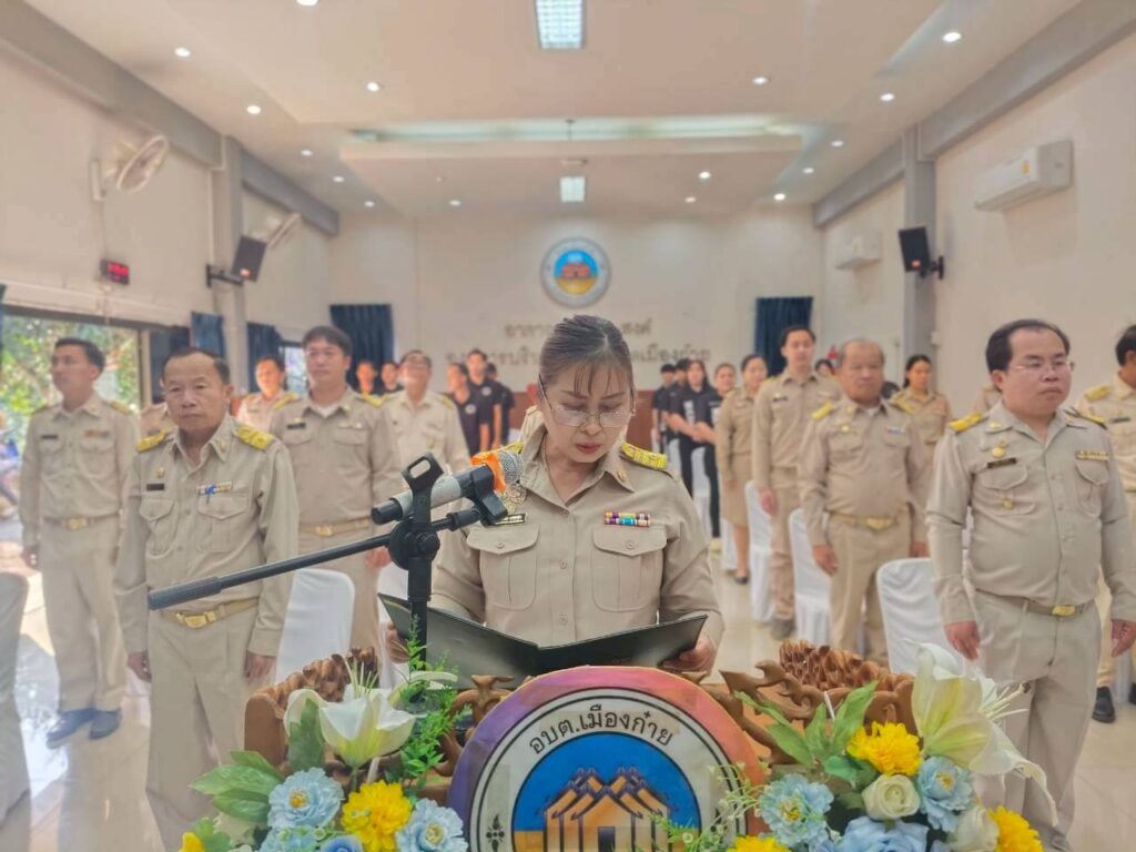 วันพุธที่ 18 มีนาคม พ.ศ.2569 นางเสาวนีย์ ผางมาลี นายกองค์การบริหารส่วนตำบลเมืองก๋าย นำคณะผู้บริหาร สมาชิกสภาฯ พนักงานองค์การบริหารส่วนตำบลเมืองก๋าย ร่วมกล่าวคำถวายราชสดุดี พระบาทสมเด็จพระจุลจอมเกล้าเจ้าอยู่หัว รัชกาลที่ 5 เนื่องในโอกาส“วันท้องถิ่นไทย” ประจำปี 2569 พร้อมจัดกิจกรรมการพัฒนาภูมิทัศน์/ปลูกต้นไม้ลดโลกร้อน ณ ศูนย์พัฒนาเด็กเล็กบ้านเหล่า สังกัด องค์การบริหารส่วนตำบลเมืองก๋าย